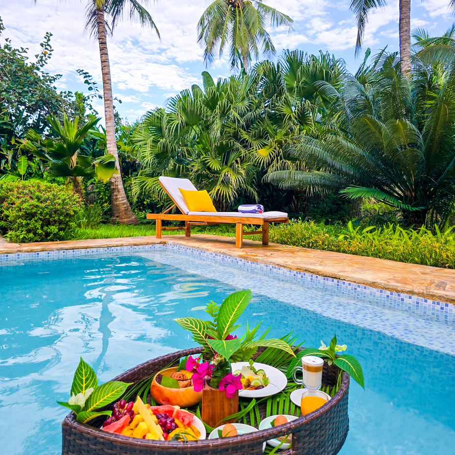 Start your day in a truly unique way with our Floating Breakfast service, where meals are served in a unique floating basket right in your private pool. Enjoy a delightful selection of morning treats while you relax in the water. This distinctive experience adds an extra layer of convenience and enjoyment to your stay at Zanzi Resort.